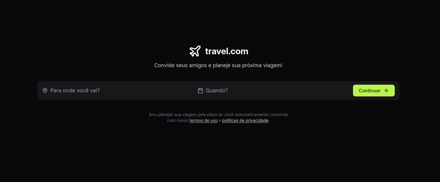 Aplicação web em React e TypeScript para planejamento de viagens em grupo, permitindo definir destino, período e gerenciar convidados por e-mail, focada em componentização e gerenciamento de estado, sem integração com back-end ou envio real de e-mails, voltada para aprendizado de conceitos do React.